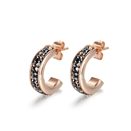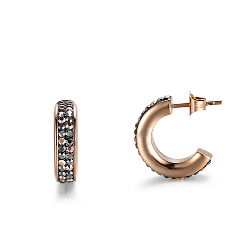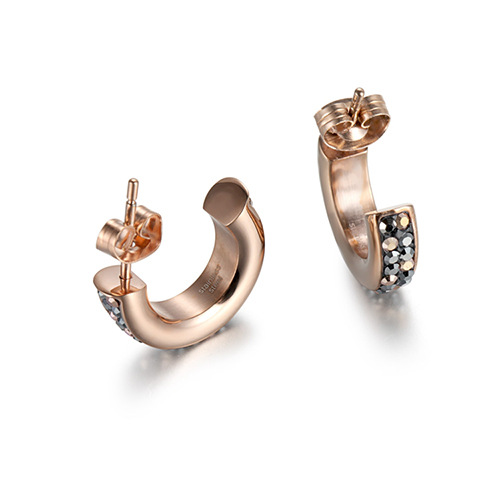 This hoop earrings was crafted from rose gold plated stainless steel. Embellished by Rose gold and black CZ stone. It was given a butterfly fastening to bolt smoothly. This earrings can be worn by women of young age.