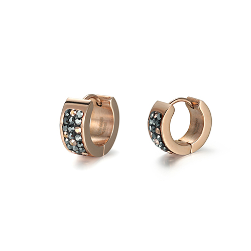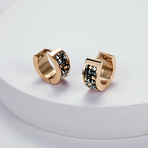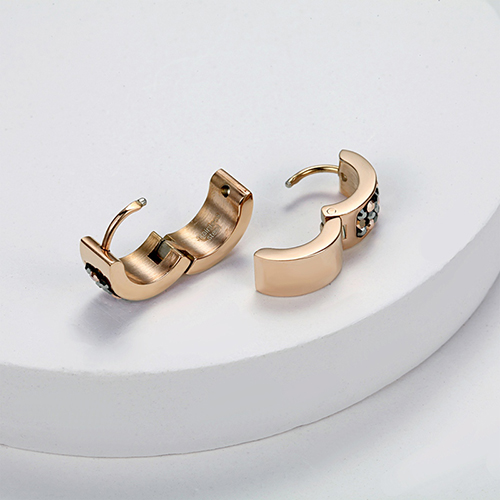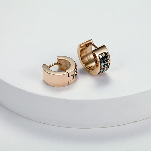 This huggie earring was crafted from rose gold plated stainless steel. Embellished by rose gold and black CZ stone. Shining cubic zircon stone exudes elegance and is suitable for mature women.