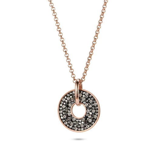 This long necklace crafted by 316 stainless steel. Rose gold plated and black Cubic Zirconia stones round pendant.