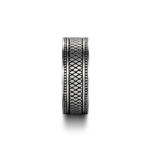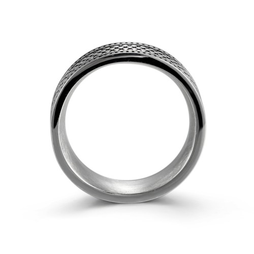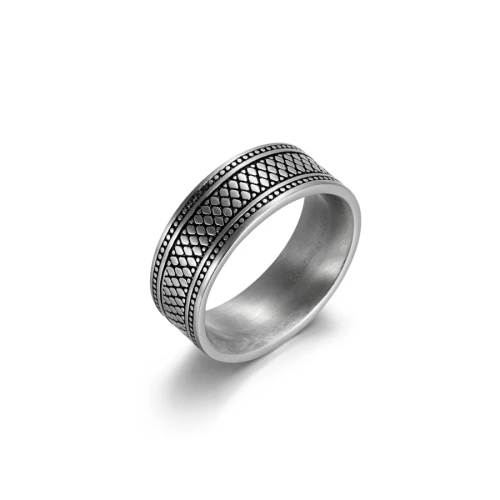 We are a manufacturer and exporter of the stainless steel ring. It has been enhanced with a reptile skin element on the ring. Show off your wild through your finger.
